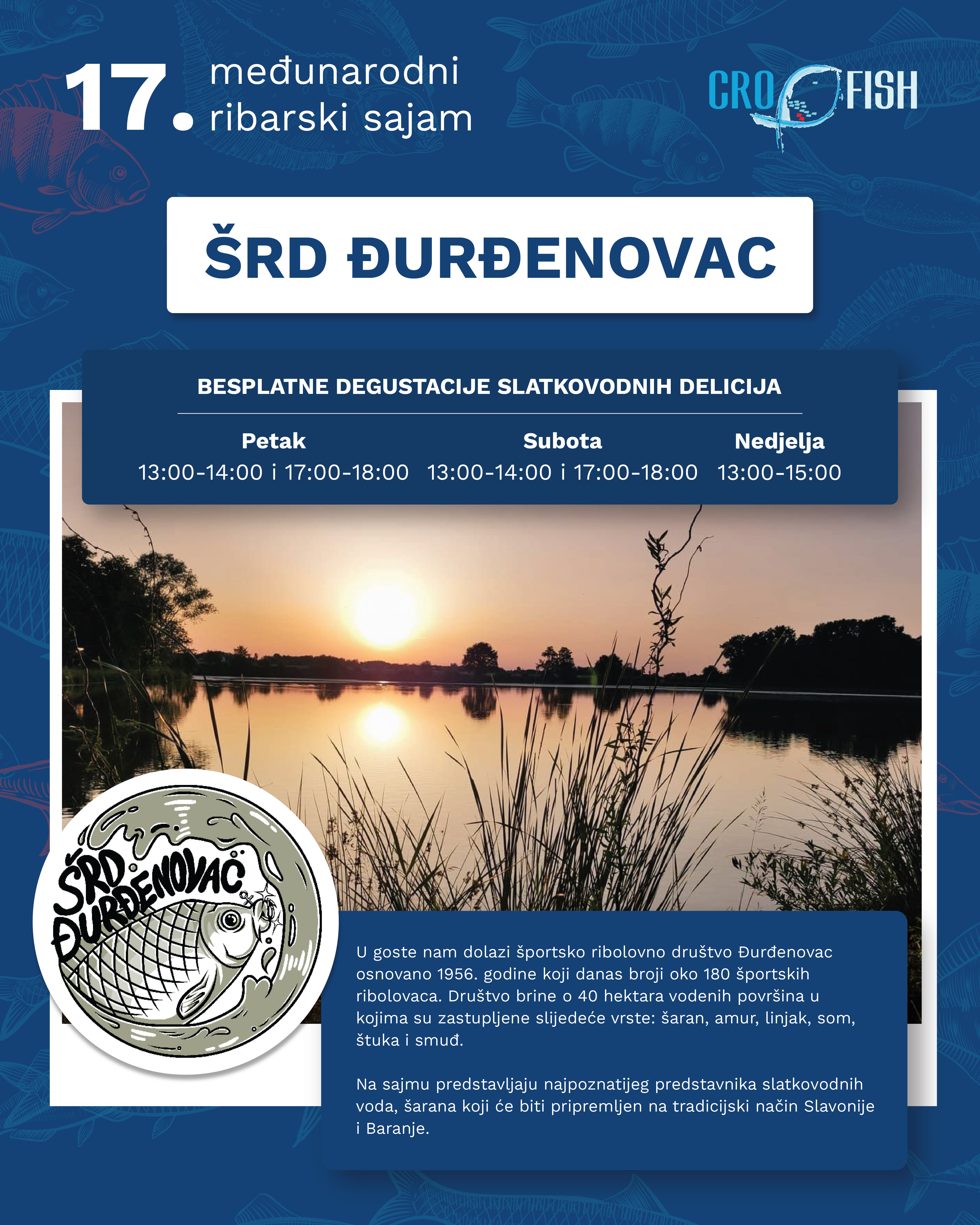 17:00 - 18:00 Besplatne degustacije slatkovodnih delicija, ŠRD Đurđenovac